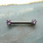 These Threadless Princess Cut Prong Set Nipple Barbells come standard with one side fixed and the other threaded.