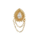 Set your spirit free with this must-have Bohemian Chic jewelry piece! Deity features a pear-cut CZ encompassed by 14kt gold intricate detailing and two draping chains along the bottom. Unleash your inner goddess when adorning this on the inner conch, lobe, and flat.