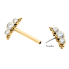 24Kt Gold PVD Titanium Beads and Semi-Bezel Set 3 Cluster CZ Nipple Barbell