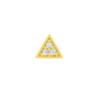 The Gold triangle piece features a flat triangle base and braced inside are three 1.5mm CZ stones.  This piece measures 5.50mm x 4.75mm. This threadless decorative end is available in 14 karat Yellow Gold, White Gold and Rose Gold options.